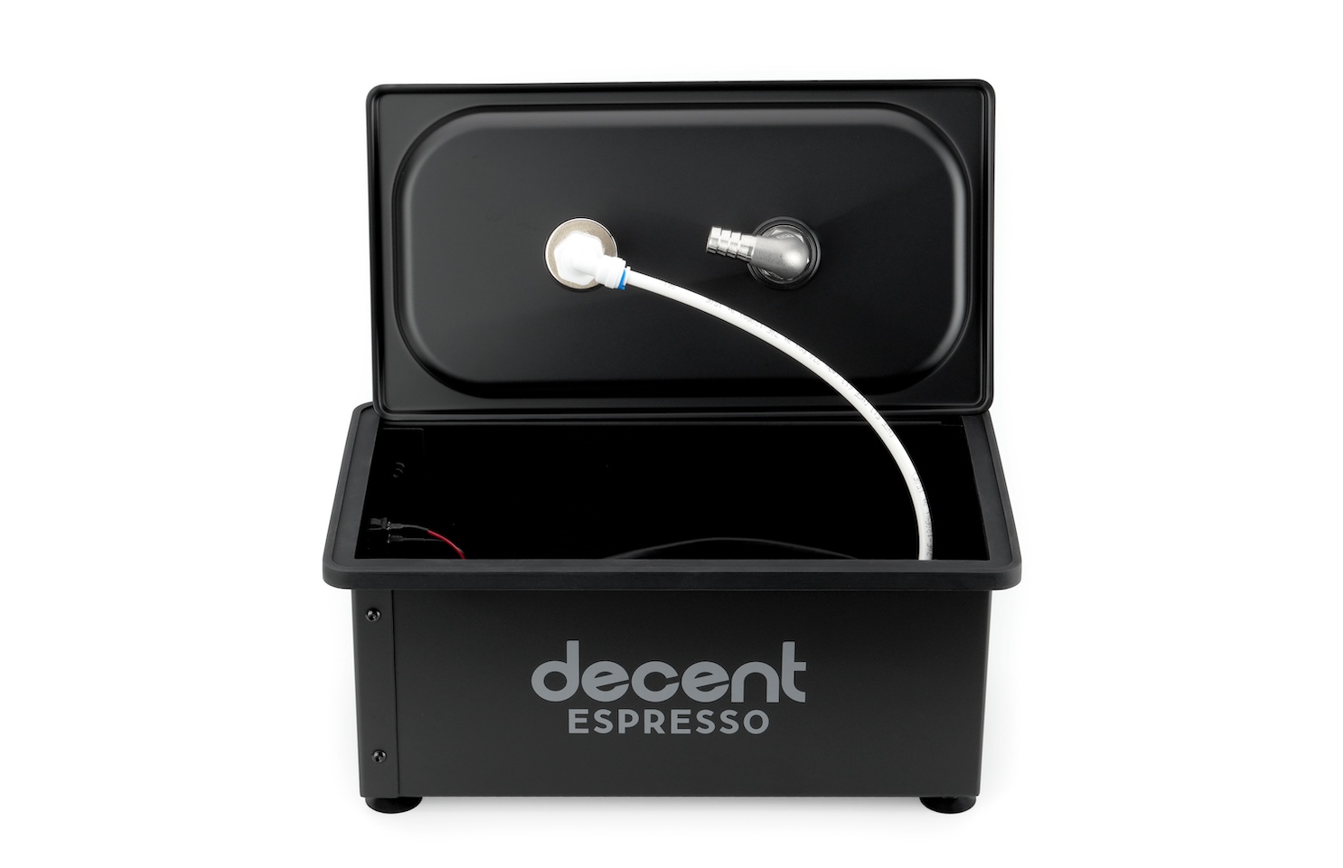 All water and electrical connections are tidily hidden within the box.